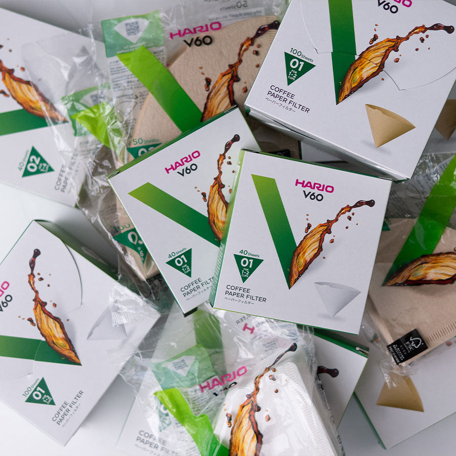 Filter paper plays an essential role in the brewing of a cup of coffee. This paper, either natural or oxygen bleached (and therefore chemical-free), is compatible with the HARIO V60 02 size dripper.